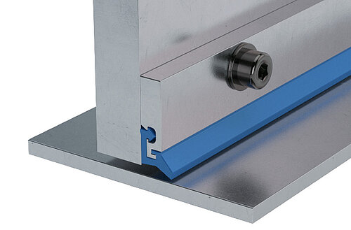 The pre-wiper and its corresponding light metal clamping strip are affixed to the machine component with the fastening screws of the wiper.