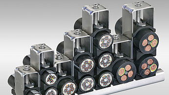 • Strain reliefs for optimum placement with dynamic use of cables