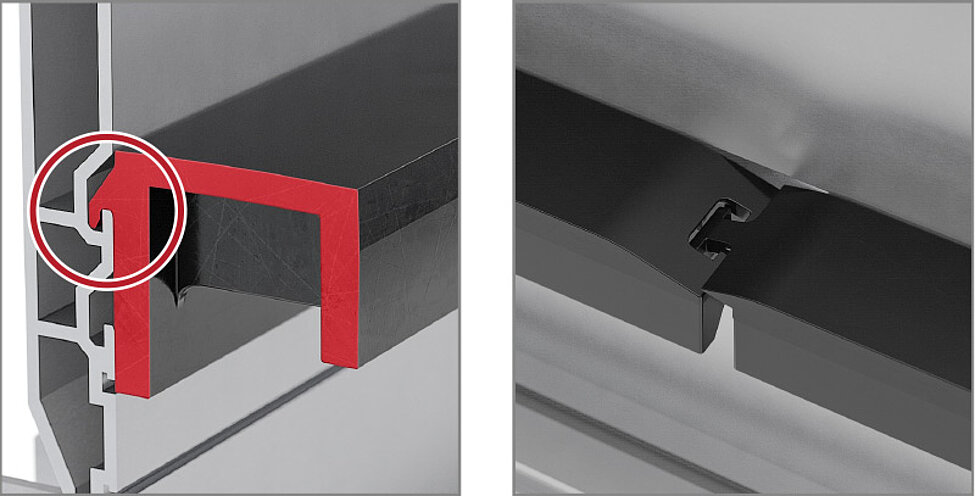 The mounting brackets are mounted at the outside of the channel. The additional joint connectors ensure precise connection of the joints.