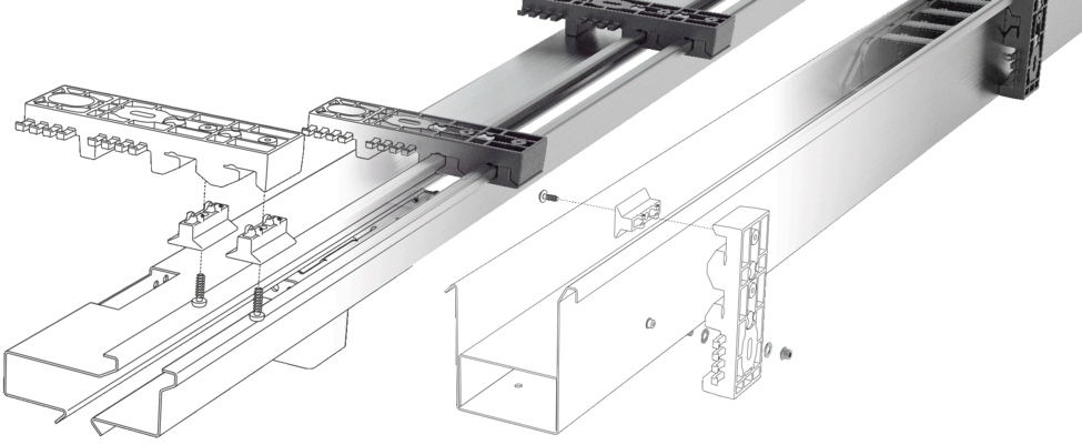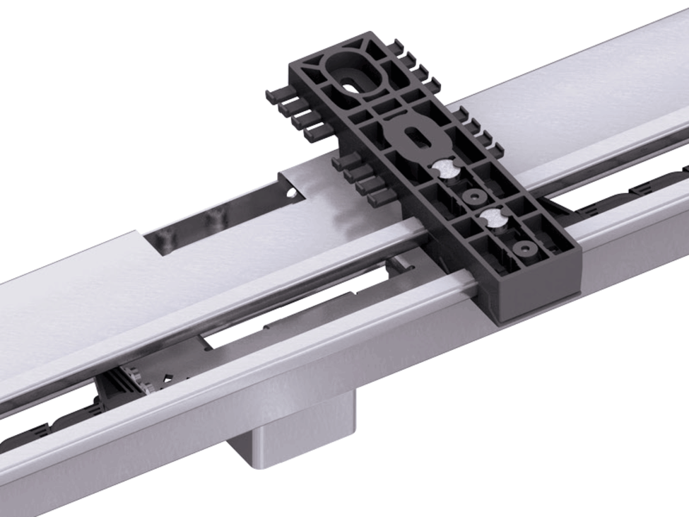 For the version of the Easy Guide System laying on its side, the correct carrier sledge has to be used for each cable carrier width.