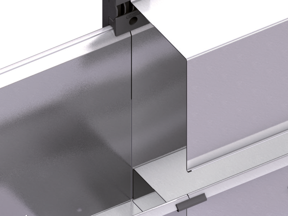 One-part channel in version with closed top (enclosure) and one-part slide plate.