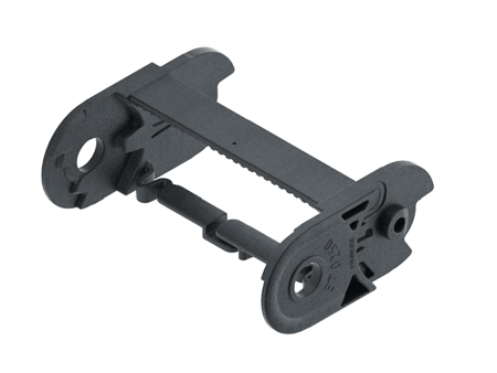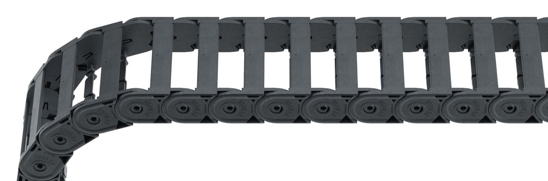 For applications with lateral accelerations and applications with the cable carrier rotated by 90°, the dividers can easily be fixed on the stay through rotation. The arresting cams snap into the catch profiles in the covers (version B).