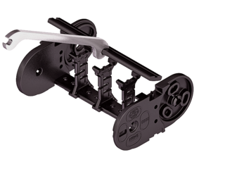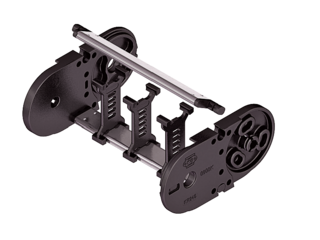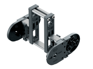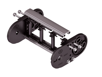 - Aluminum profile bars plastic adapter for medium to high loads and large cable carrier widths. Assembly without screws.