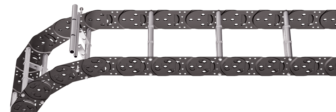 - Steel rolling stays with gentle cable support and steel dividers. Ideal for using media hoses with soft sheathing. Easy screw connection.