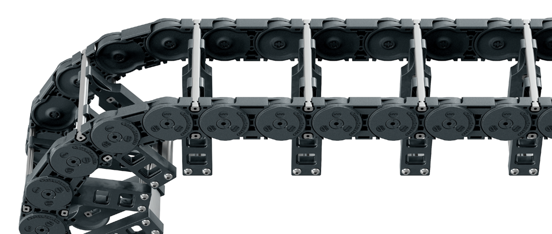 • Aluminum profile bars with plastic mounting frame stays for guiding very large cable diameters.