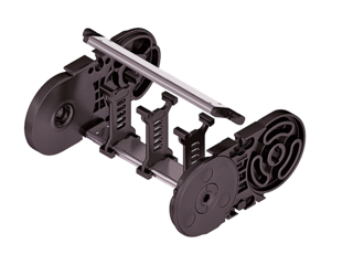 - Aluminum profile bars with plastic adapter for medium to high loads and large cable carrier widths. Assembly without screws.