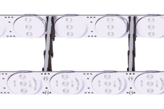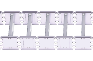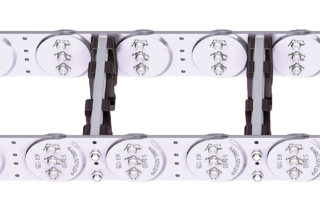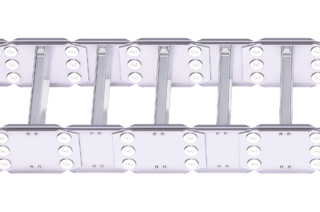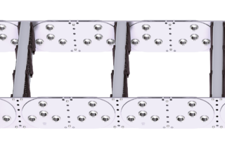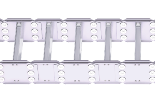 Proven steel cable carriers with extremely sturdy link plates and dedicated joint design with multi stroke system and hardened bolt. The extremely sturdy design allows extensive unsupported lengths and high possible additional loads.