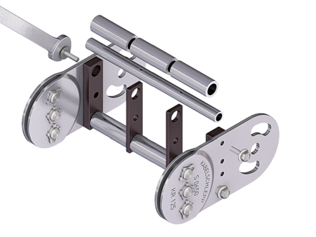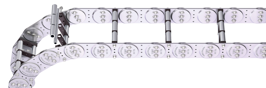 - Steel rolling stays with gentle cable support and plastic dividers. Ideal for using media hoses with soft sheathing. Easy screw connection.