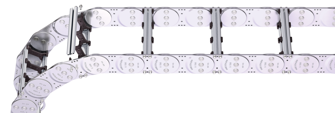 • Aluminum profile bars for heavy loads and maximum cable carrier widths. Double threaded joint on both sides “Heavy Duty”.