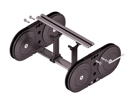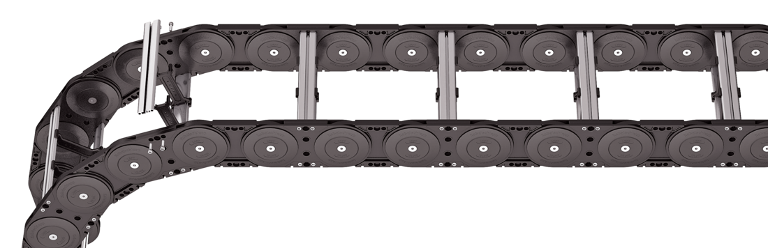 - Aluminum profile bars for heavy loads and maximum cable carrier widths. Double threaded joints on both sides “Heavy Duty”.
